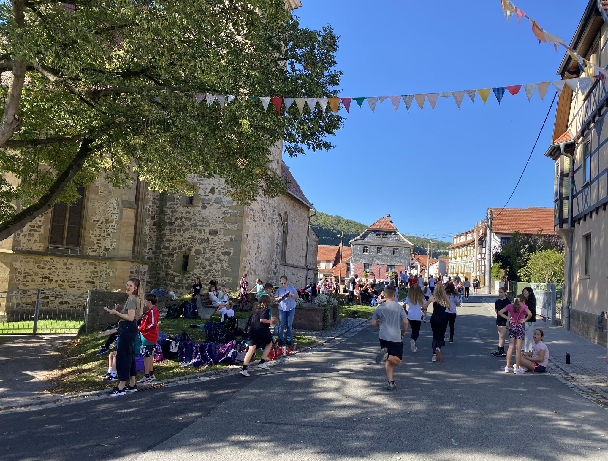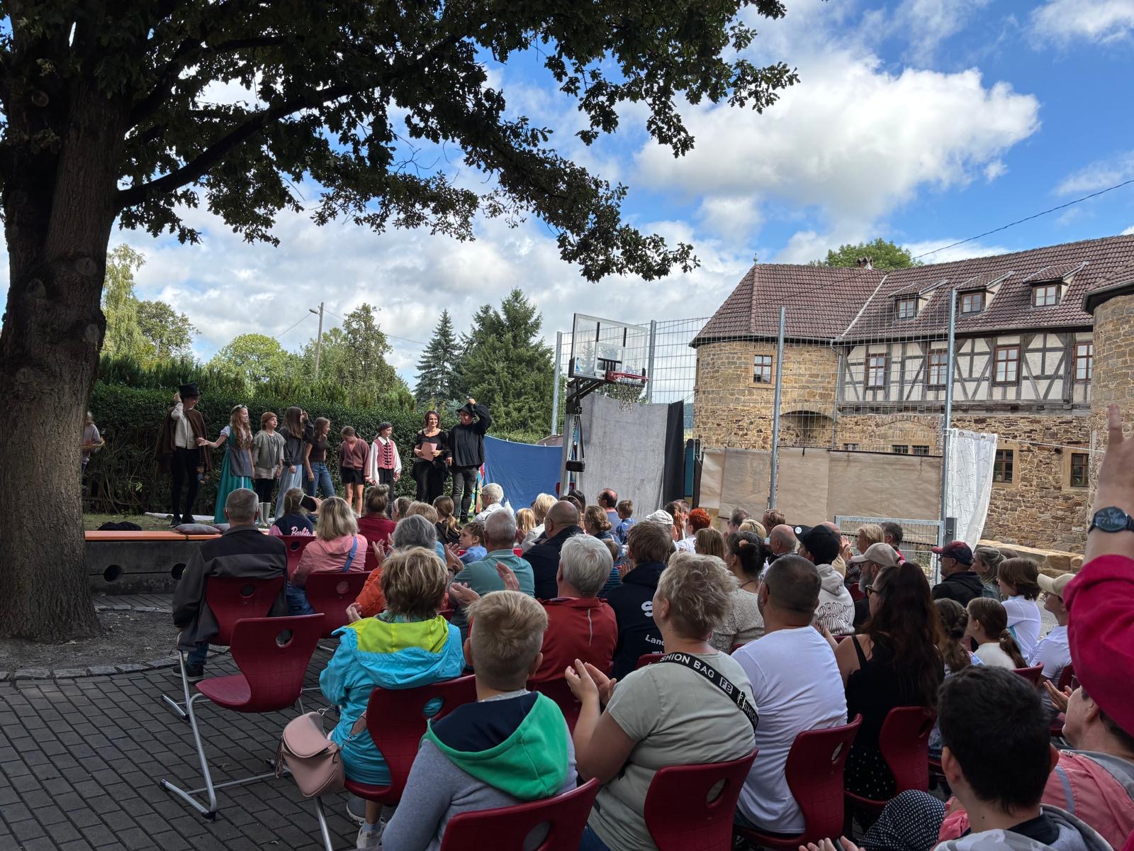 In diesem Zusammenhang laden wir alle Interessierten am 30.August 2025 zu unserem schulischen Beitrag zur 1200-Jahrfeier in Bibra ein. An diesem Tag der offenen Höfe werden wir sowohl für das leibliche Wohl sorgen (vorderer Schulhof) als auch unser Theaterstück „Zeitreise“ zur Aufführung bringen, welches im Rahmen des Kulturagentenprogrammes in Zusammenarbeit mit dem Meininger Theater erarbeitet wurde (12.00, 13.00, 14.00, 15.00, 16.00 Uhr auf dem hinteren Schulhof).