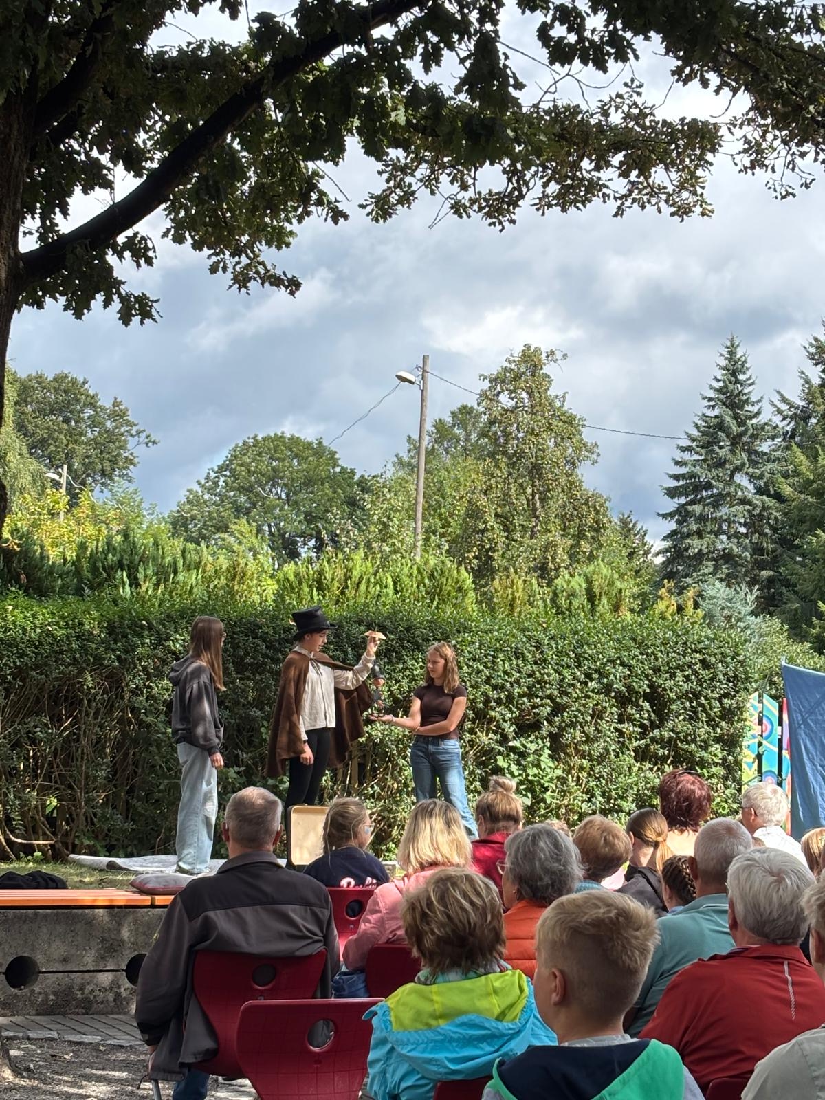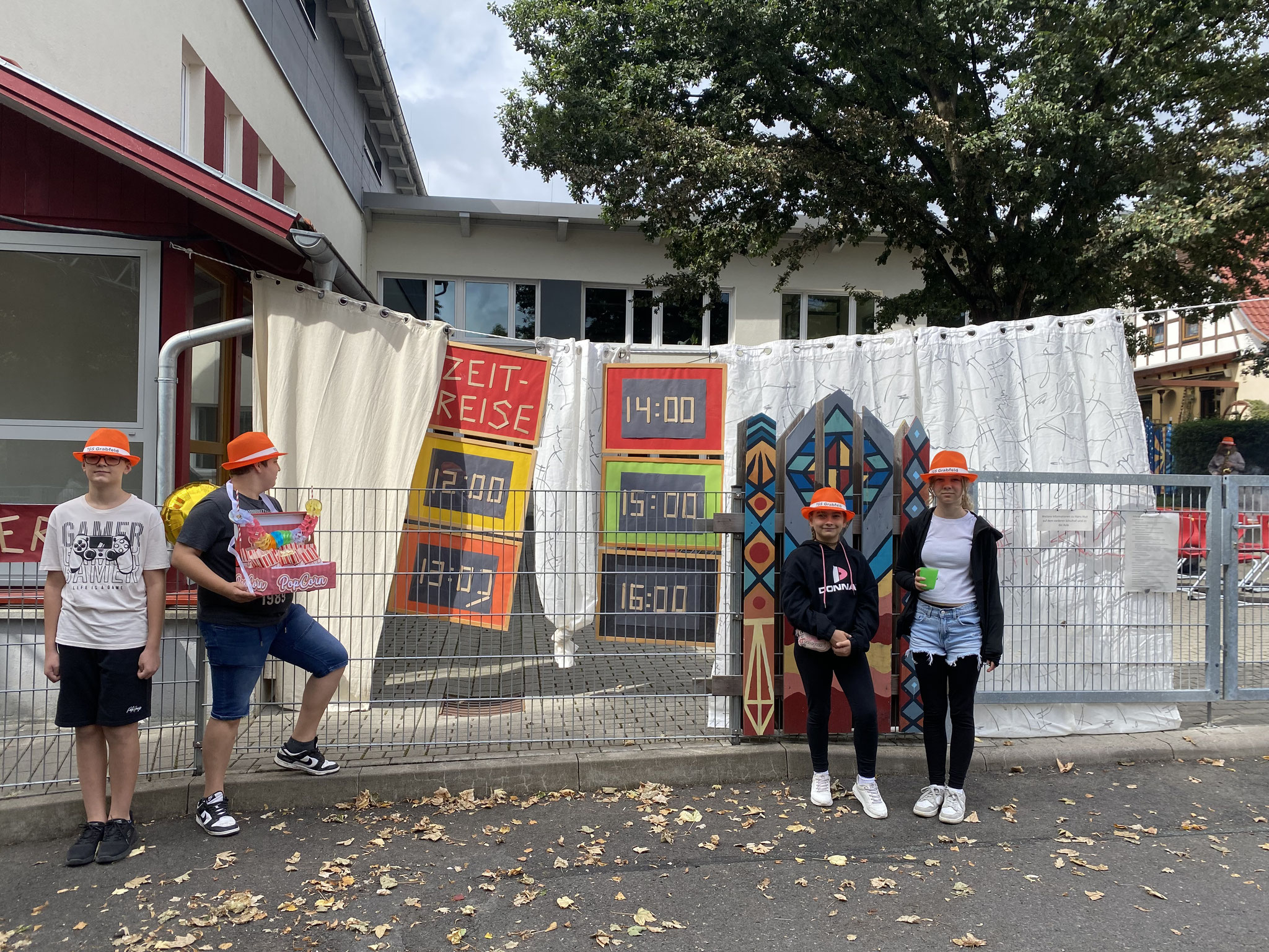 Auf dem Hinteren Schulhof begrüßten wir zahlreiche Besucher zu fünf Aufführungen des selbst entworfenen Theaterstückes mit dem Titel "Zeitreise" begrüßen. Dieses Theaterstück wurde in Kooperation mit dem Puppenspieler Falk Ulke (Meininger Theater) sowie dem Kulturagentenprogramm Südthüringen bereits am Ende des letzten Schuljahres einstudiert.
