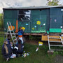 Passend zum herbstlichen letzten Projektunterricht-Tag vor den Ferien konnten noch einige Kürbisse im Bauerngarten geerntet werden. Wer wollte, durfte sich auch am Wagen künstlerisch verewigen.